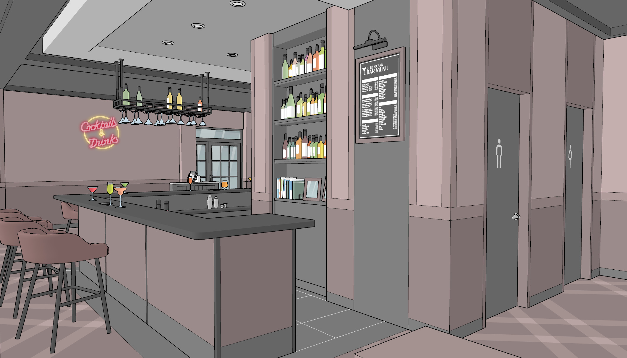 길다란 바테이블은 칵테일 바 하면 빼놓을 수 없는 중요한 자리죠.