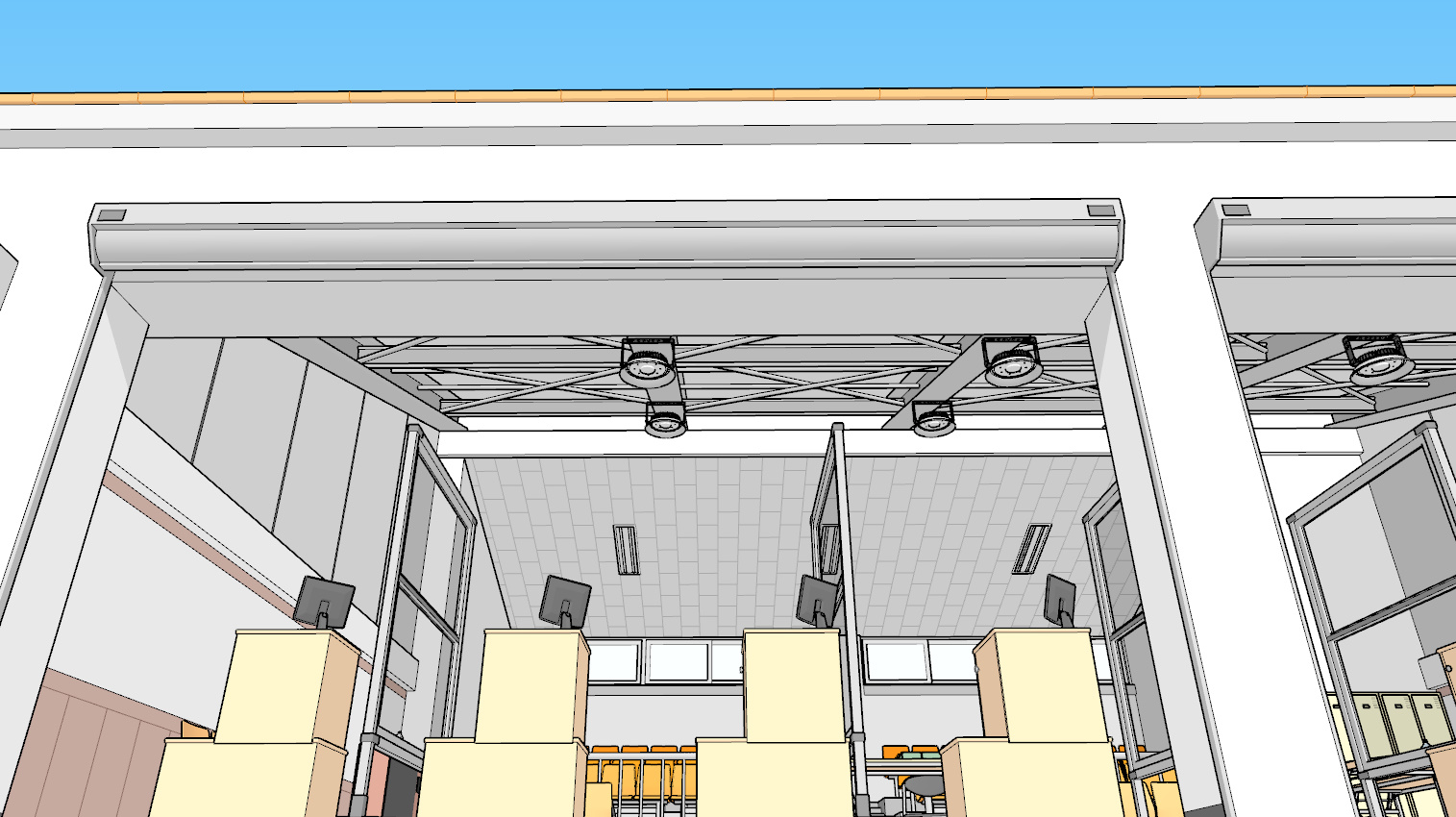 덕트로 깔끔하게 정리해 단자함으로 보내는 디테일을 신경써서 묘사했습니다.