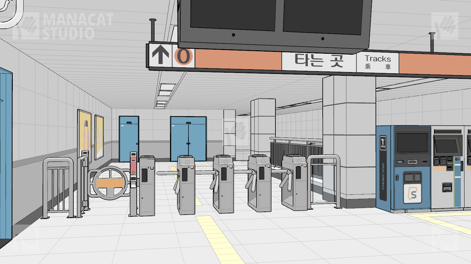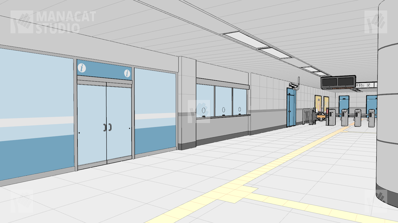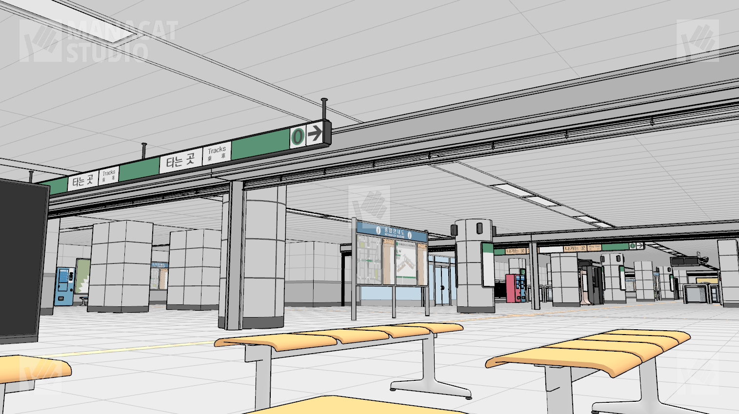 전체구조를 알지 못하고선 쉽게 구조를 알아보기 힘드므로 이 앵글 저 앵글 돌려 쓰셔도 중복감 없이 충분하게 지하철 역사 내부를 연출할 수 있습니다.
