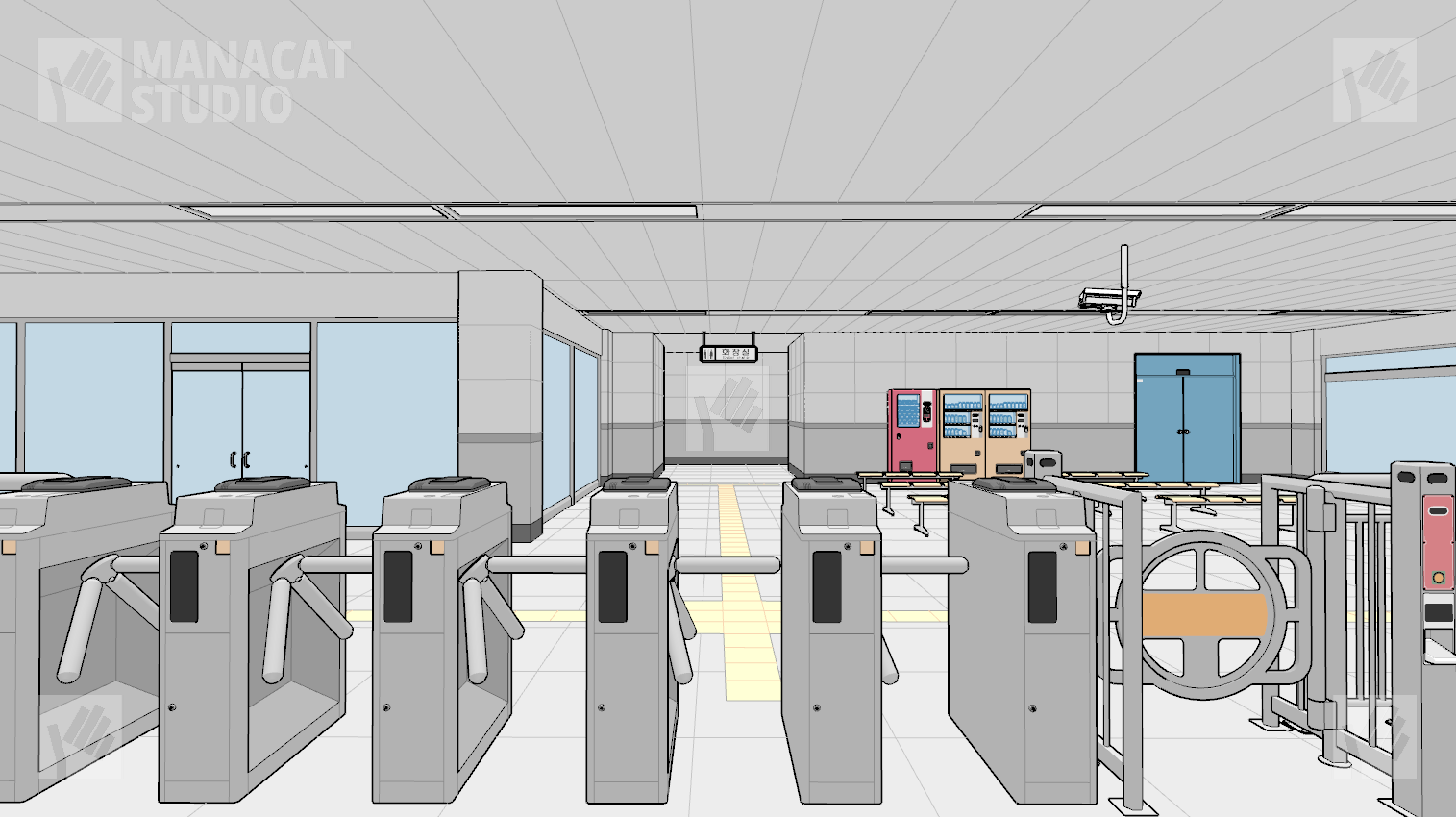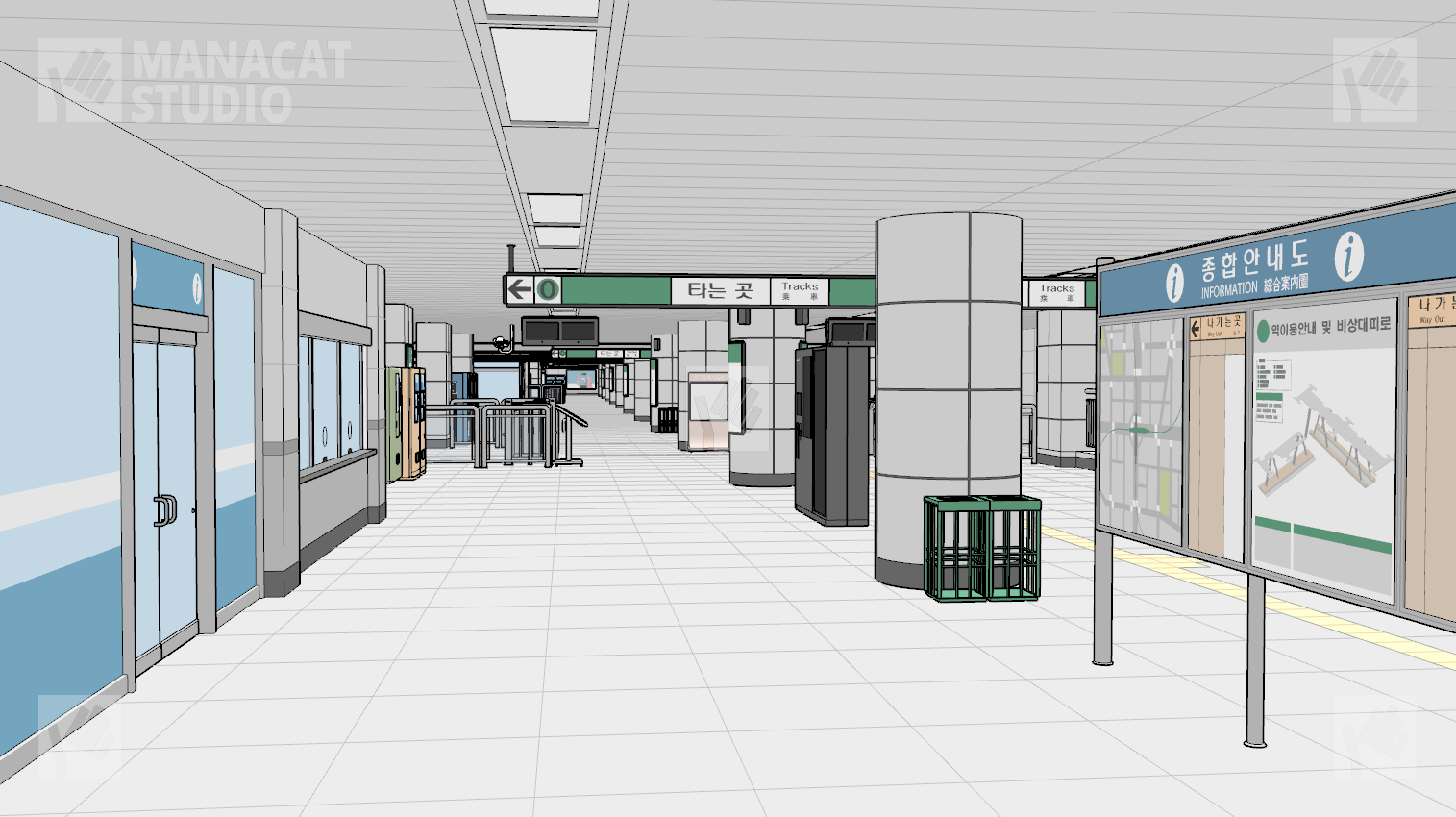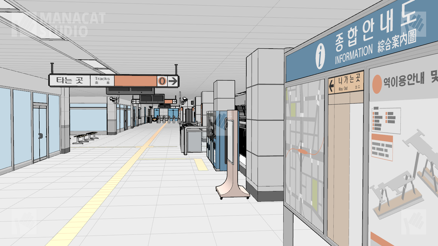 전체구조를 알지 못하고선 쉽게 구조를 알아보기 힘드므로 이 앵글 저 앵글 돌려 쓰셔도 중복감 없이 충분하게 지하철 역사 내부를 연출할 수 있습니다.