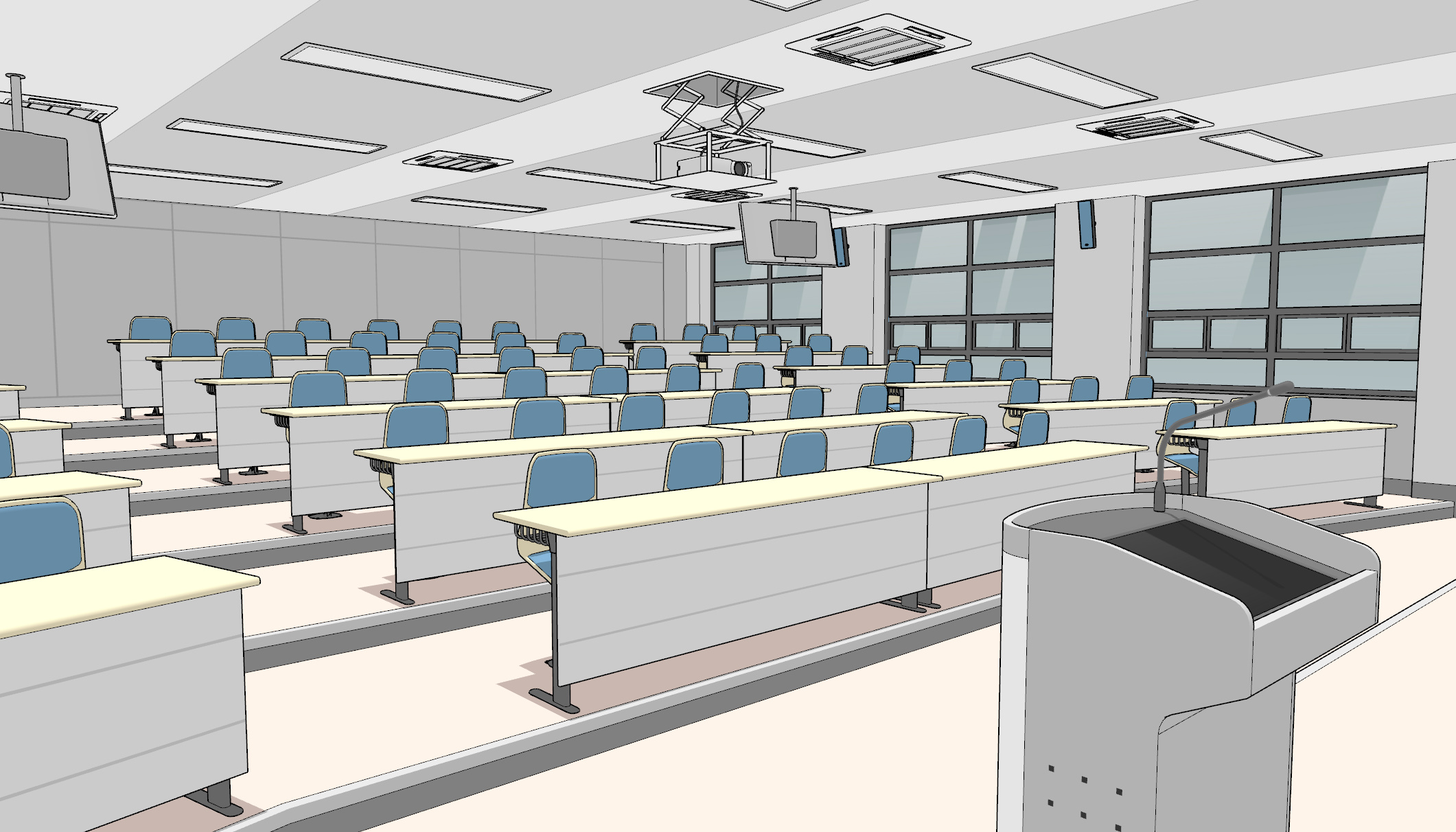 물론 마치 학원인 마냥 평이한 강의실도 상당히 많고, 사실 대학에 따라선 오히려 그 쪽이 더 보편적인 강의실 유형이라고까지 말할 수도 있겠지만,