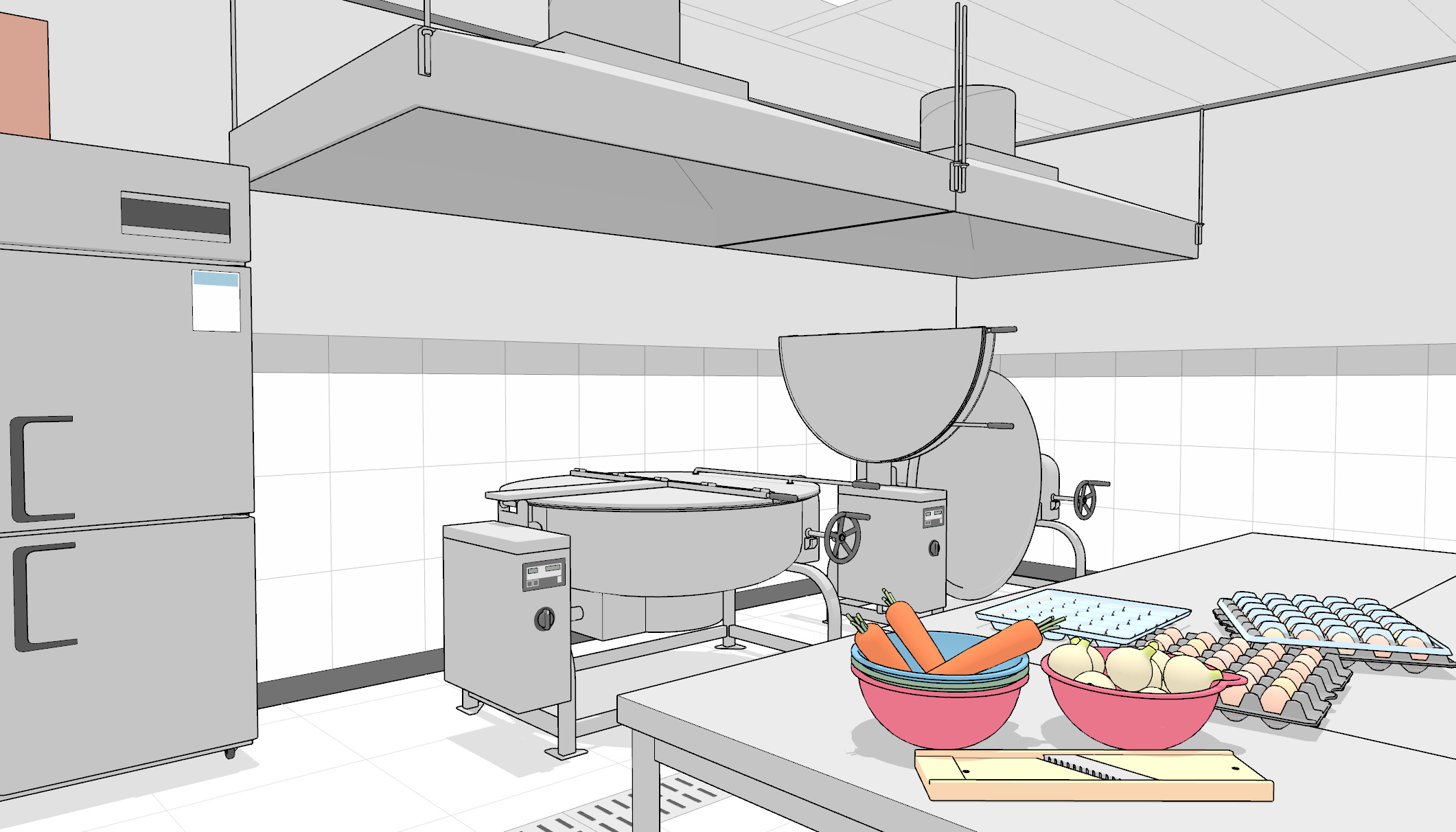 서울대 학생회관 식당 구조를 베이스로 연세대 학생식당 촬영으로 모은 자료 + 인터넷 검색 자료를 합쳐서 공간 구조를 짰습니다.