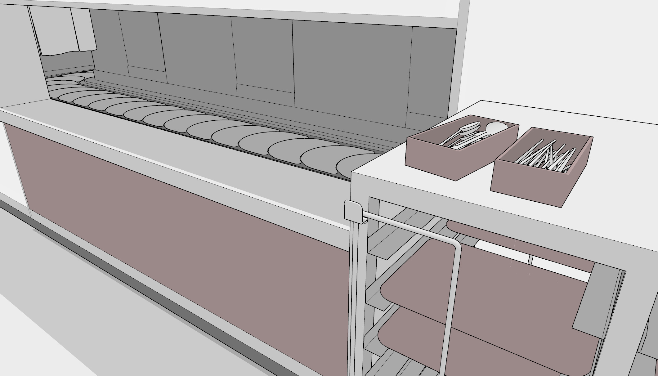 사실상 컨베이어가 있기 때문에 식판 운반차는 없어도 무방하겠지만,