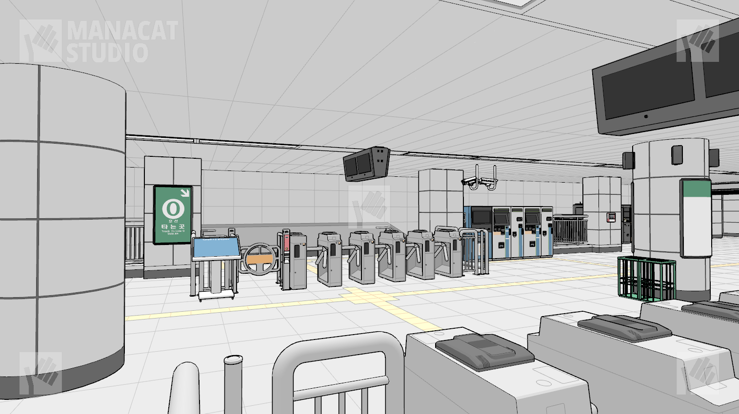 전체구조를 알지 못하고선 쉽게 구조를 알아보기 힘드므로 이 앵글 저 앵글 돌려 쓰셔도 중복감 없이 충분하게 지하철 역사 내부를 연출할 수 있습니다.