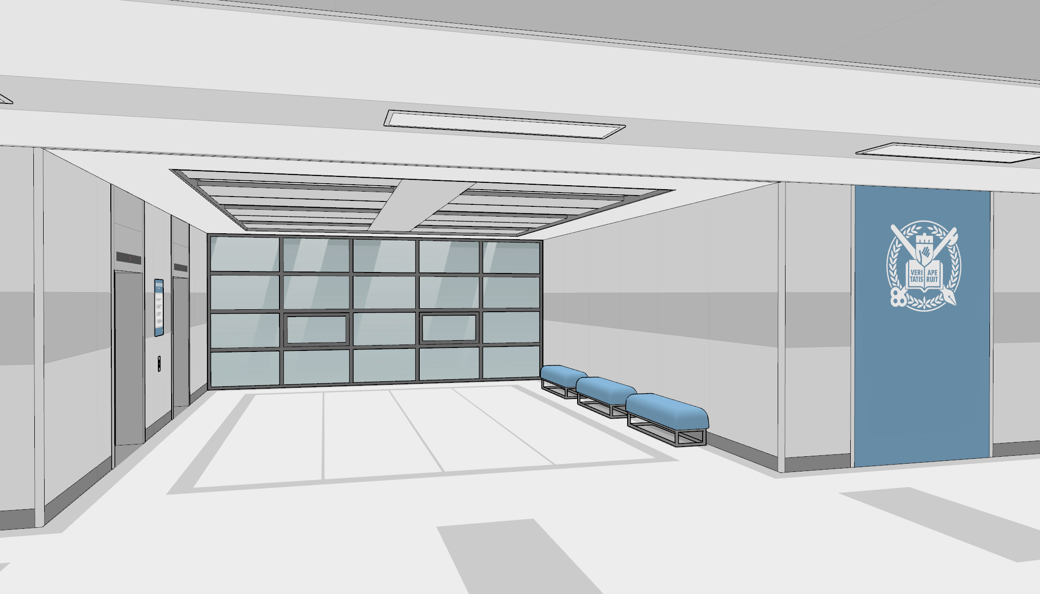 성원에 보답하고자 대학교 강의실의 확장판, 종합강의동 로비를 제작하여 선보입니다.